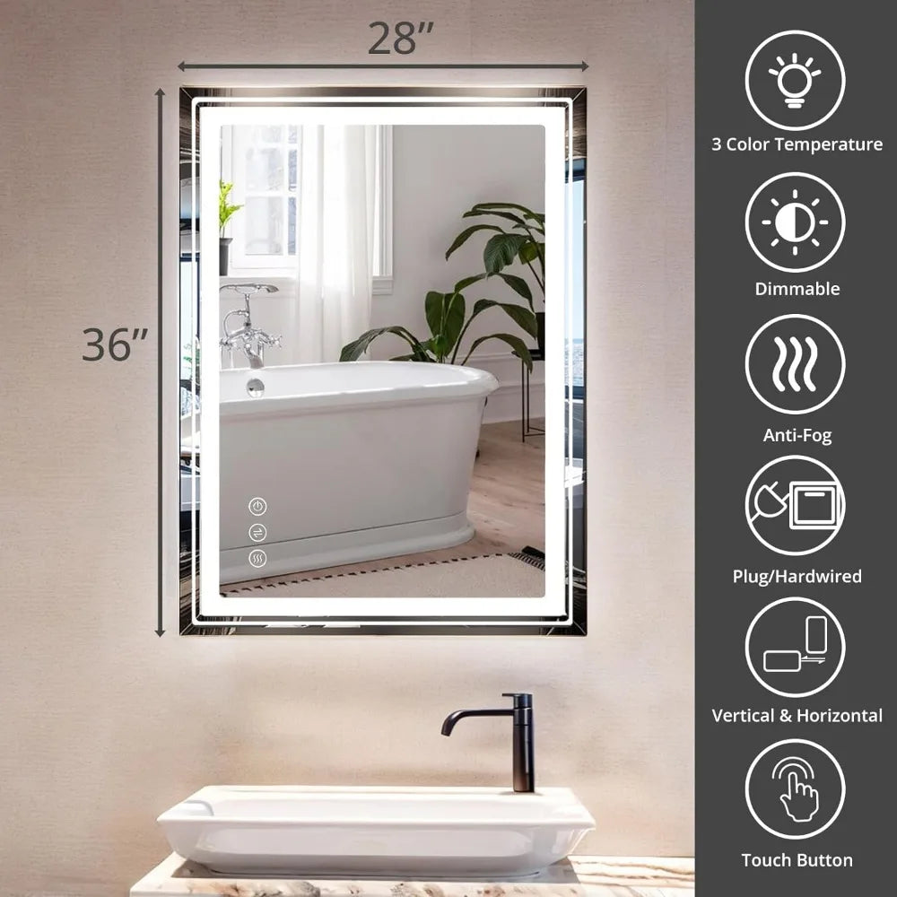Transform your bathroom into a stylish retreat with our Bathroom Mirror with Lights, measuring 36x28 inches. This sleek, modern mirror not only enhances your decor but also provides the perfect illumination for your daily routines. Featuring built-in LED lights, it offers bright, energy-efficient lighting that simulates natural daylight, making it ideal for makeup application, grooming, and skincare.