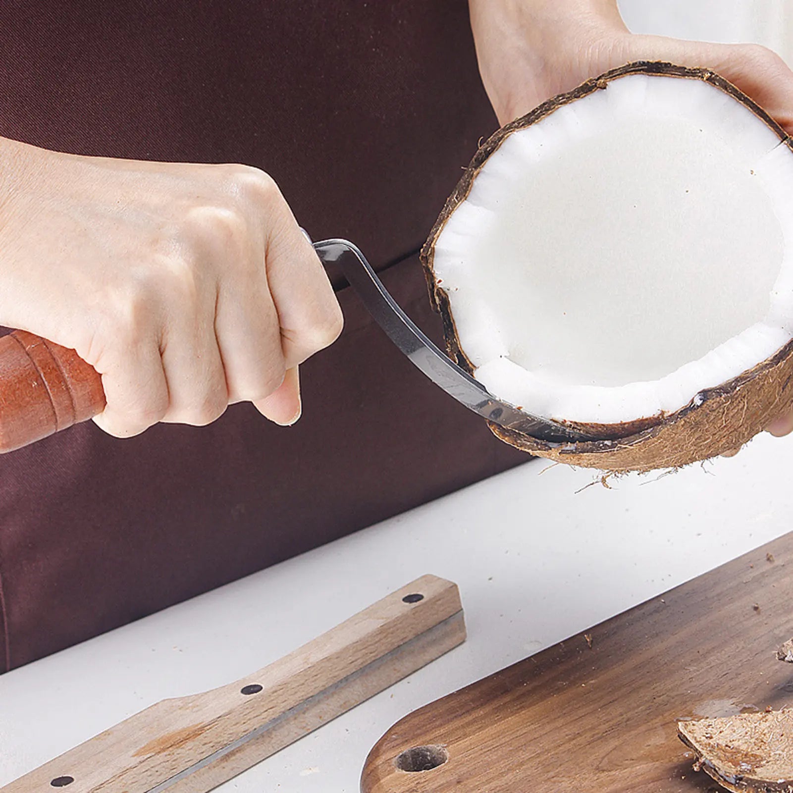 • Versatile utensil set for opening coconuts effortlessly at home or in commercial settings