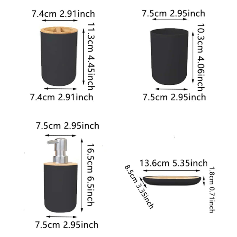 Easy to clean and maintain, this bathroom accessory set is not only practical but also enhances your space's overall appeal. Transform your daily routines into a spa-like experience with our Bathroom Accessories 4 Piece Set!
